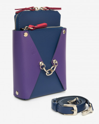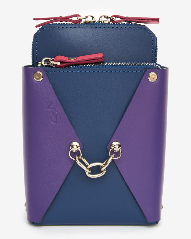 На фото Талія:сумка у поєднання синього, фіолетового та рожевого кольорів.