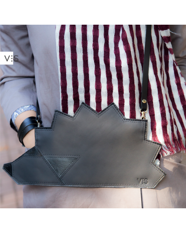 Корпус виготовлено з натуральної шкіри українського виробництва. Всередині одне відділення. У комплекті є зйомна довга ручка. За бажанням вона може бути виготовлена повністю зі шкіри чи у поєднанні з ланцюжком.