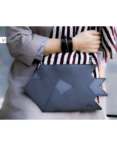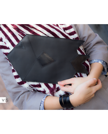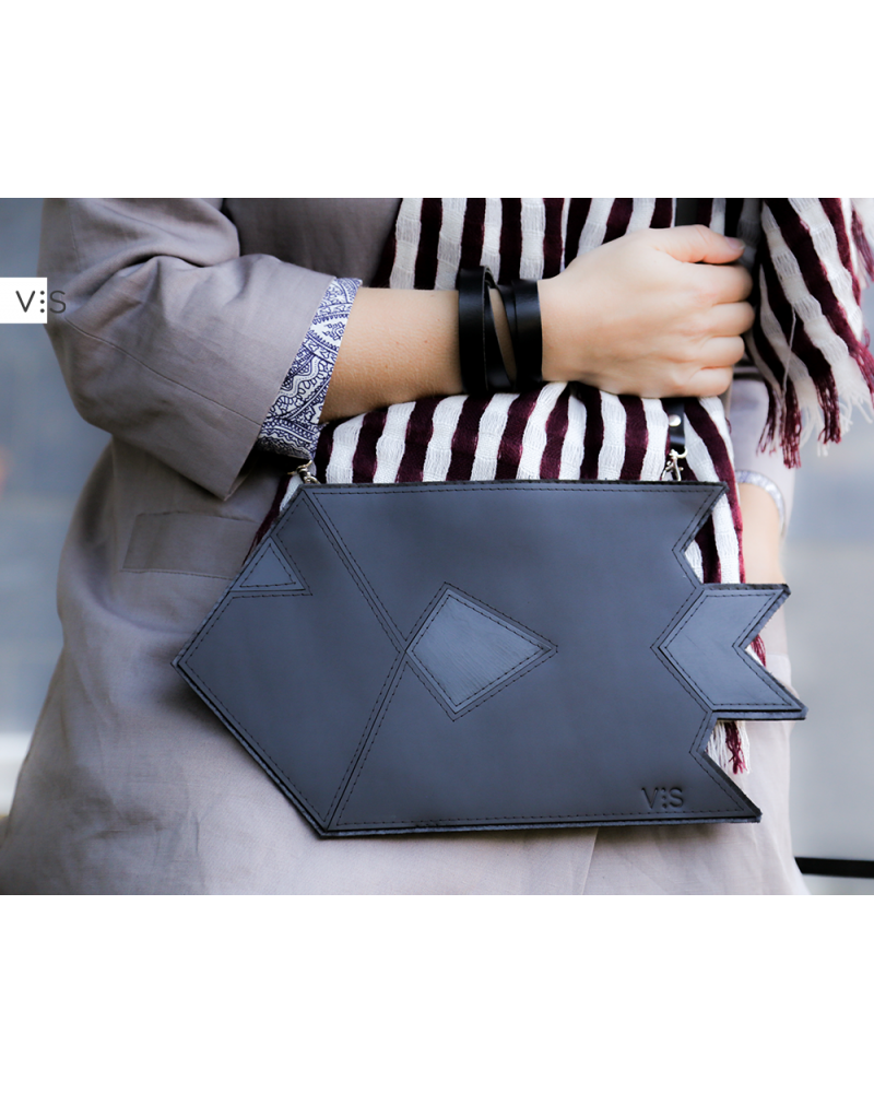 Корпус виготовлено з натуральної шкіри українського виробництва. Всередині одне відділення. У комплекті є зйомна довга ручка. За бажанням вона може бути виготовлена повністю зі шкіри чи у поєднанні з ланцюжком.