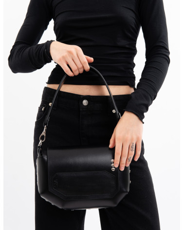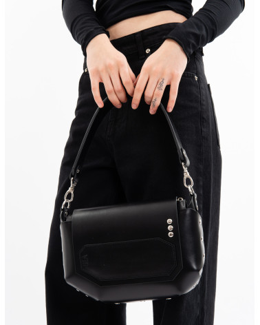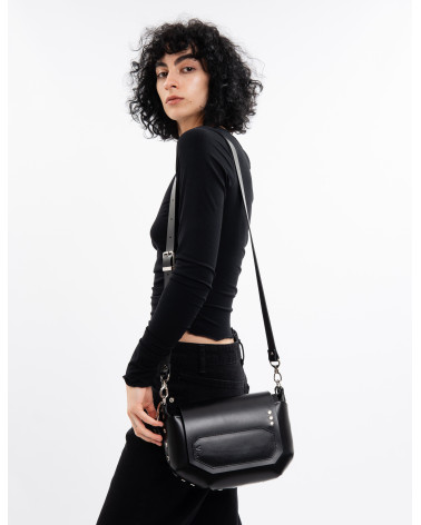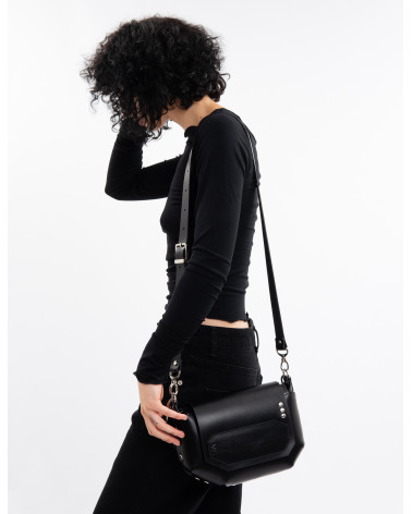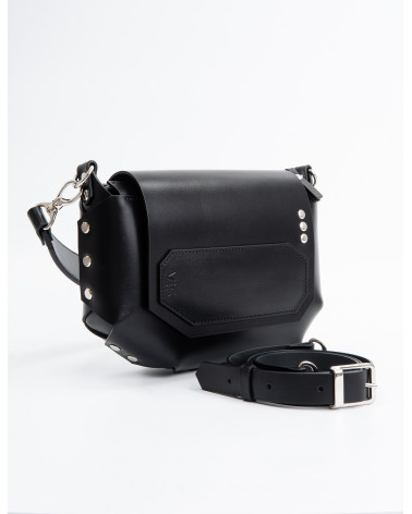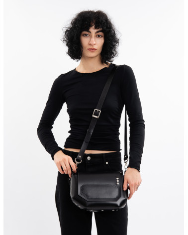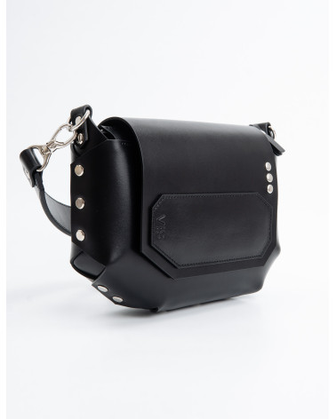 Корпус виготовлено з натуральної шкіри українського виробництва. Основне відділення закривається на кришку-клапан, магніт та блискавку. Всередині сумочки одне відділення та кишенька з фетру для ключів/телефону/дрібничок.