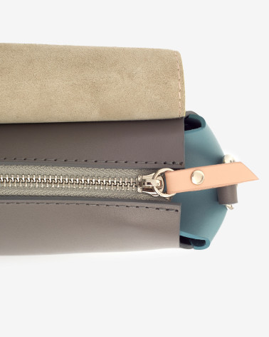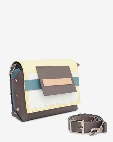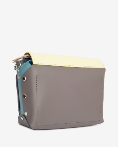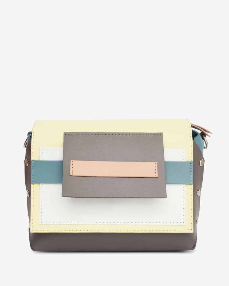 На фото Саїф:портфель у поєднанні сірого, жовтого, білого та пудрового кольорів.