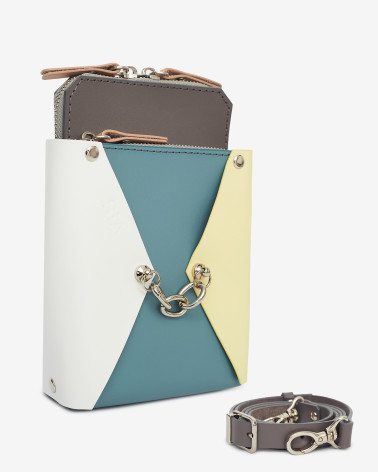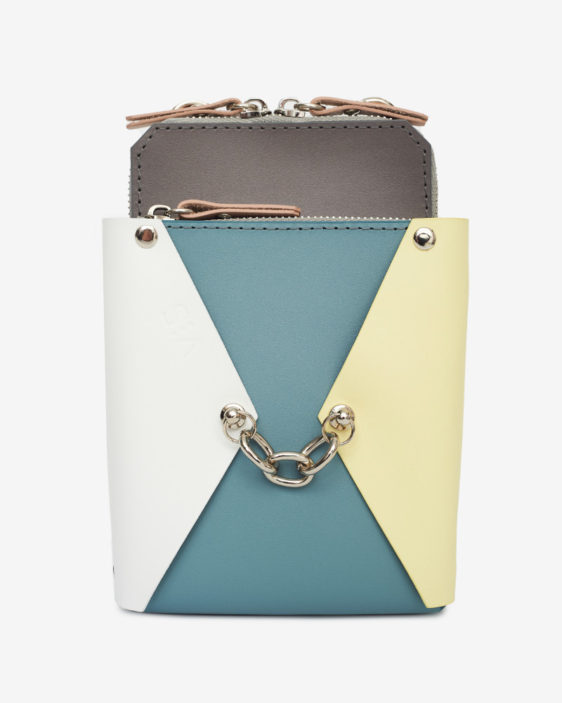 На фото Талія:сумка у поєднанні сірого, блакитного, жовтого, білого та пудрового кольорів.