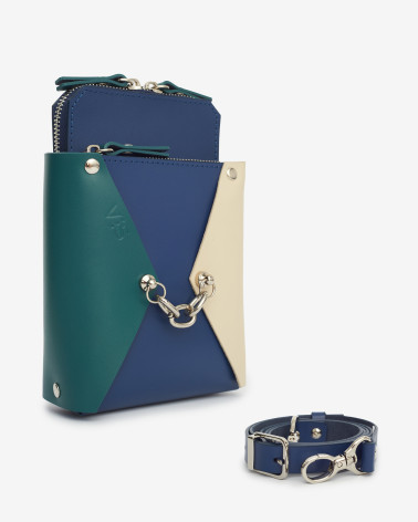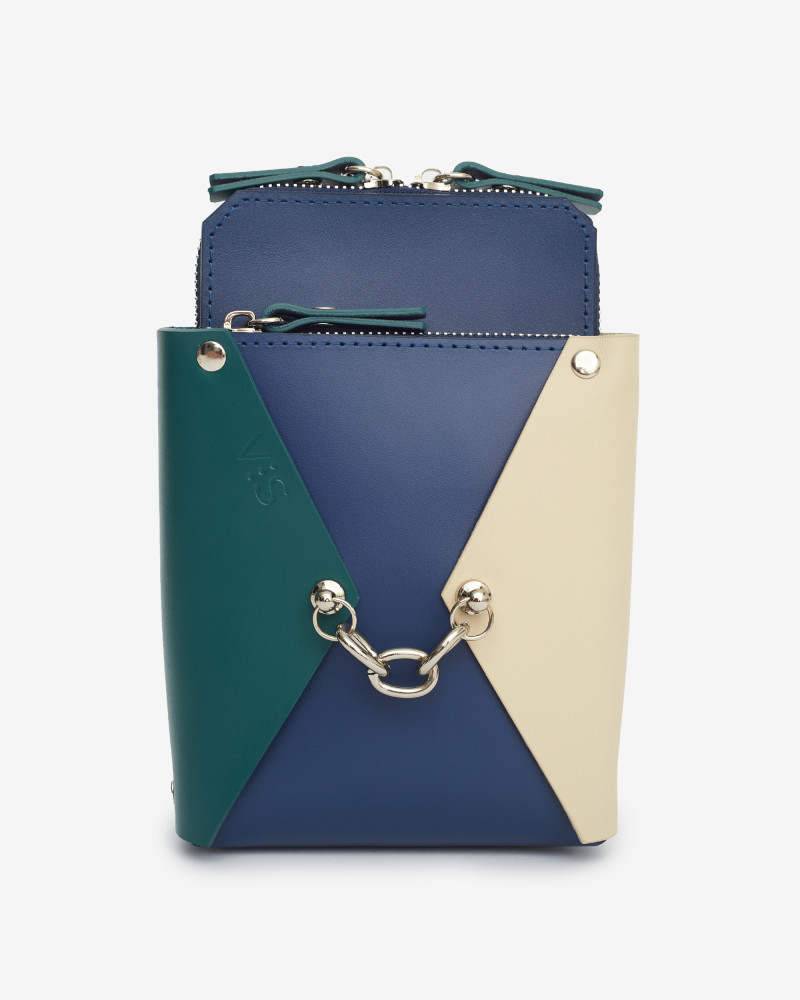 На фото Талія:сумка у поєднанні синього, смарагдового та кольору айворі.