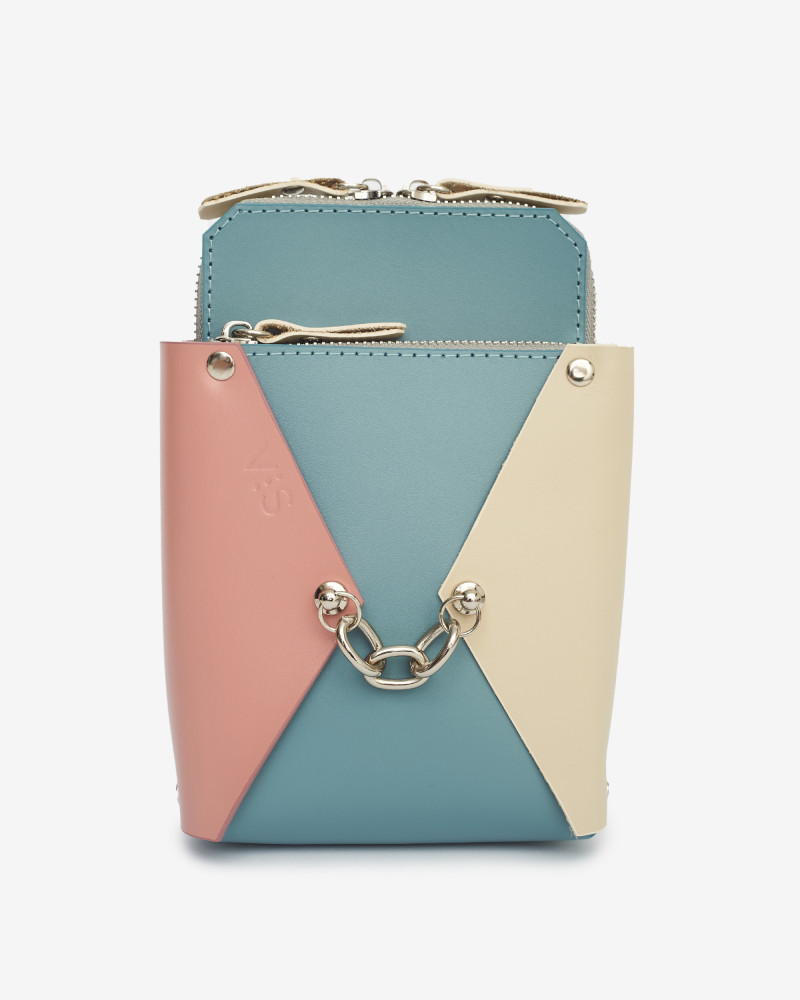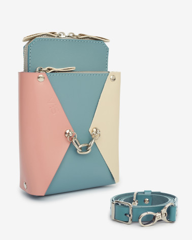 На фото Талія:сумка у поєднанні блакитного, рожевого та кольору айворі.