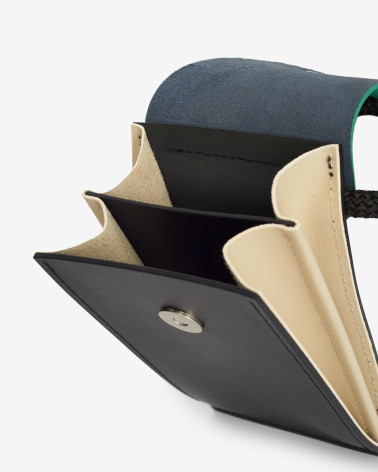 Ми створили цю сумку для порятунку світу. По-перше, це сумка для телефону, що має два відділення. По-друге, вона швидко трансформується у сумочку на талії та надзвичайно витончено її підкреслює. По-третє, більше не доведеться довго та нервово шукати телефон. Він буде поруч та йому там буде затишно. По-четверте, це зручна "друга" сумочка, що буде пасувати до вашої основної сумочки чи наплічника. По-п'яте, цей ремінь-шнур. Він створений для маленьких милих дрібниць, на кшталт кейса для навушників чи гаманця.