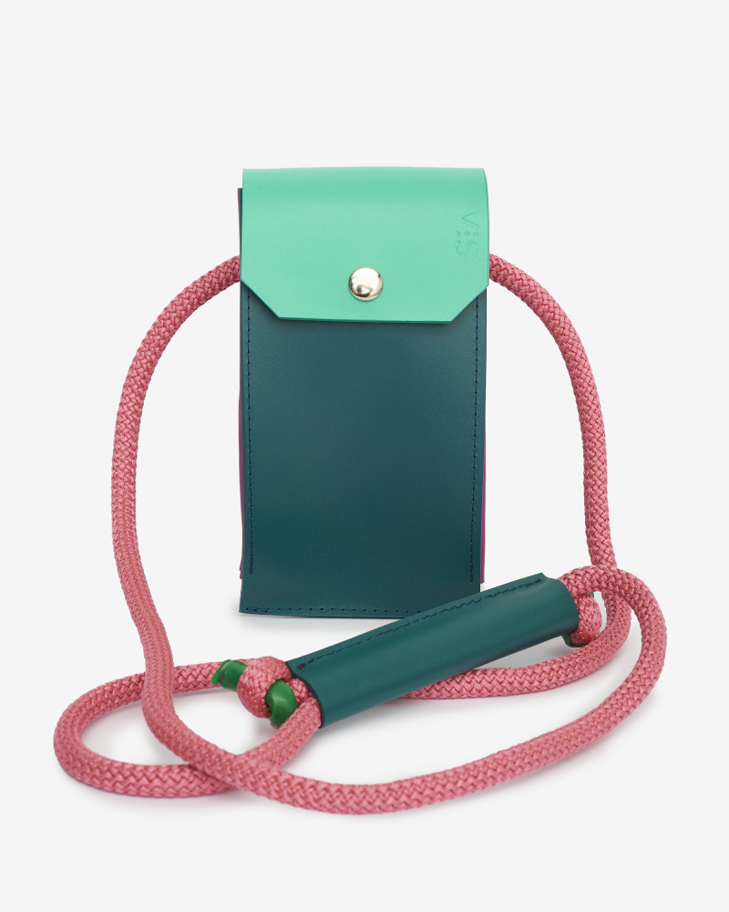 Ми створили цю сумку для порятунку світу. По-перше, це сумка для телефону, що має два відділення. По-друге, вона швидко трансформується у сумочку на талії та надзвичайно витончено її підкреслює. По-третє, більше не доведеться довго та нервово шукати телефон. Він буде поруч та йому там буде затишно. По-четверте, це зручна "друга" сумочка, що буде пасувати до вашої основної сумочки чи наплічника. По-п'яте, цей ремінь-шнур. Він створений для маленьких милих дрібниць, на кшталт кейса для навушників чи гаманця.
