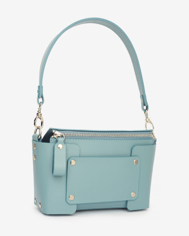Корпус виготовлено з натуральної шкіри. Основне відділення сумочки закривається на блискавку. Всередині сумочки одне відділення та кишеня з фетру. У комплекті до сумочки йде дві ручки. Широка, щоб носити у ріці \ на передпліччі \ на плечі. Та довга з регулюванням довжини.