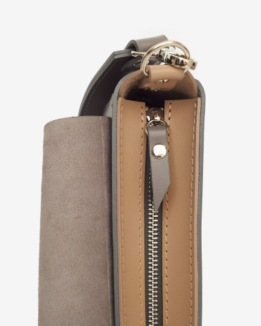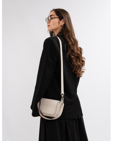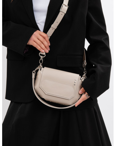 Корпус виготовлено з натуральної шкіри українського виробництва. Основне відділення закривається на кришку-клапан, магніт та блискавку. Всередині сумочки одне відділення та кишенька з фетру для ключів/телефону/дрібничок.