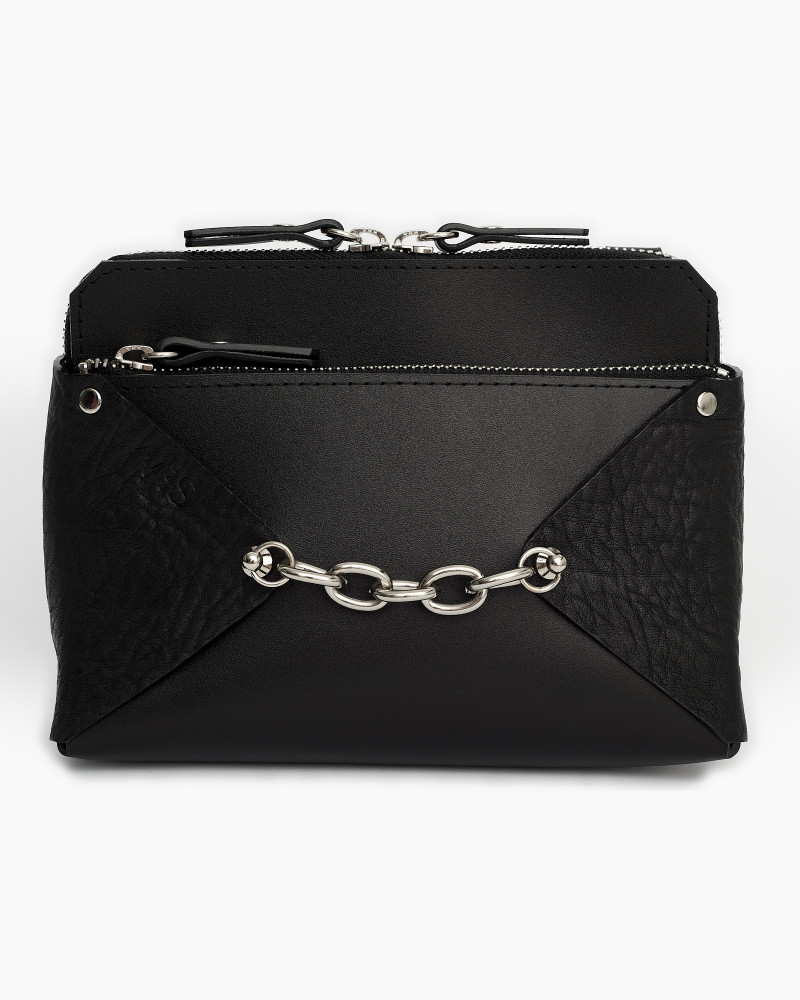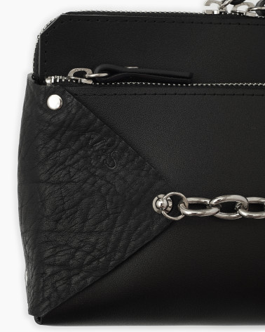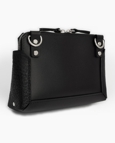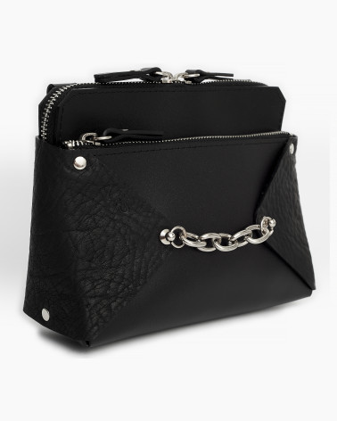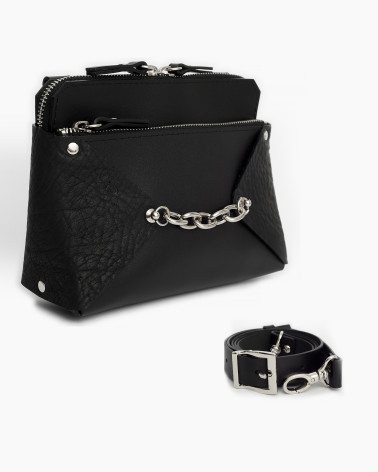 На фото Талія:сумка у поєднанні чорної гладкої та чорної структурної шкіри.