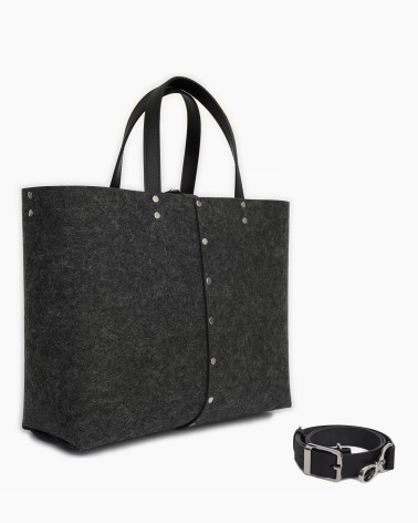 На фото Вега:шоппер у форматі зовнішній корпус виготовлено з фетру (повсті), внутрішня сумочка з натуральної шкіри.