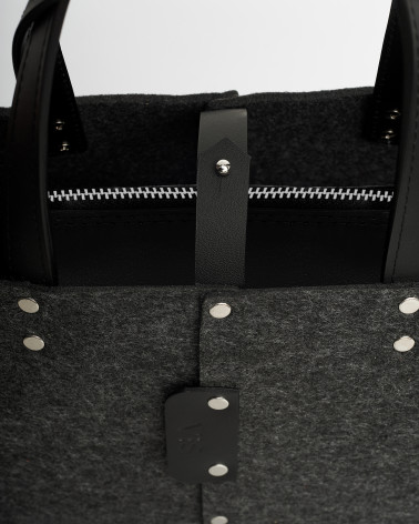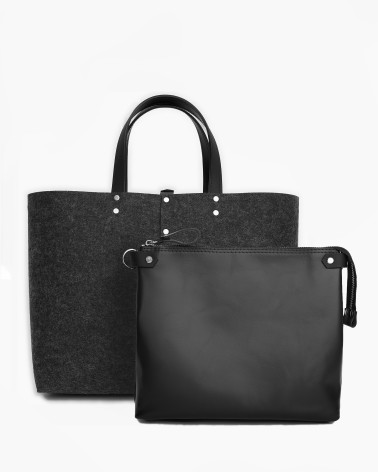 На фото Вега:шоппер у форматі зовнішній корпус виготовлено з фетру (повсті), внутрішня сумочка з натуральної шкіри.