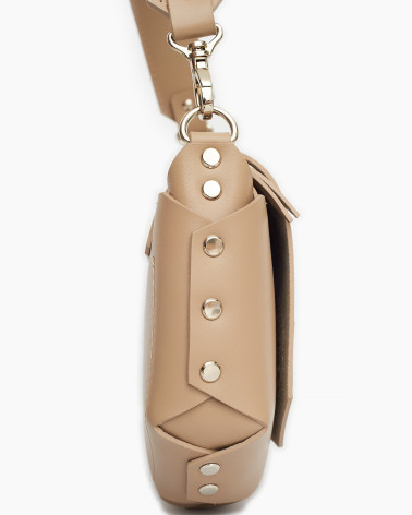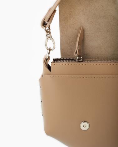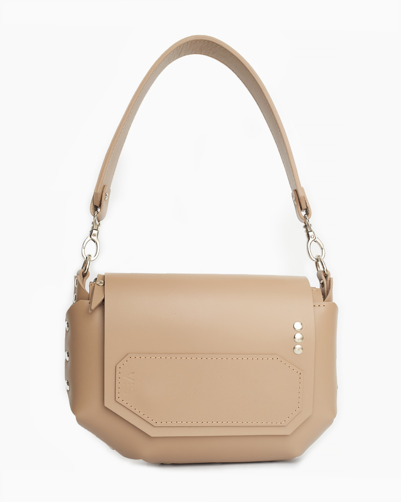 Корпус виготовлено з натуральної шкіри українського виробництва. Основне відділення закривається на кришку-клапан, магніт та блискавку. Всередині сумочки одне відділення та кишенька з фетру для ключів/телефону/дрібничок.
