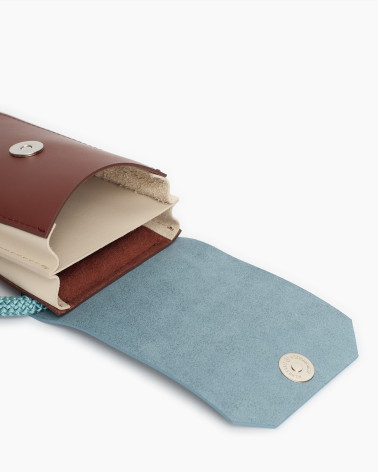 Корпус виготовлено зі шкіри українського виробництва. Основне відділення закривається на кришку-клапан та кнопку. Всередині сумочки два відділення. Ми рекомендуємо використовувати одне відділення сумочки для телефону, а друге у якості гаманця/ кейсу для павербанку/ карток, ключів, документів. У комплекті є ручка-шнур, яка дозволяє досить зручно носити сумочку crossbody чи, змінюючи довжину ременю, підкреслювати талію.
