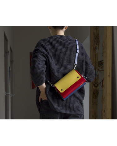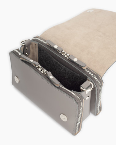 Корпус виготовлено з натуральної шкіри українського виробництва. Основне відділення закривається на кришку-клапан та магніт. Всередині сумочки три відділення та кишенька з фетру для ключів/телефону/дрібничок.