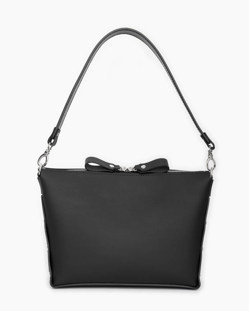 Корпус виготовлено зі шкіри українського виробництва. Для цієї моделі ми використовуємо шкіру у двох товщинах. Більш щільну, для основних деталей та ручок. Та мʼякішу для корпусу сумочки. І тому, маємо надзвичайно велику палітру кольорів для поєднання у цій моделі.
