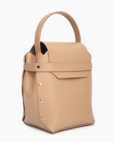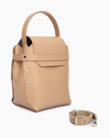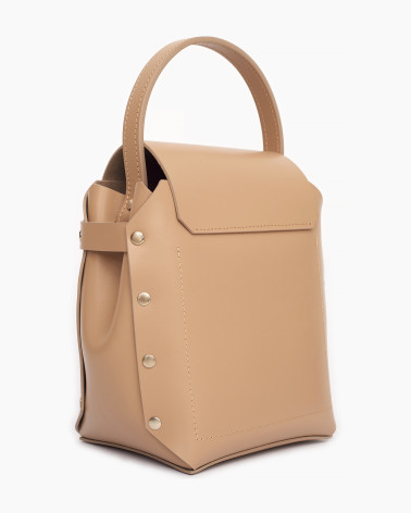 Корпус сумочки виготовлено з натуральної шкіри українського виробництва. Основне відділення закривається на кришку-клапан. За допомогою короткої ручки, сумку зручно носити у руці чи на передпліччі. Всередині - одне відділення та кишеня з фетру для ключів/телефону/дрібничок. У комплекті є зйомна довга ручка, виготовлена зі шкіри.