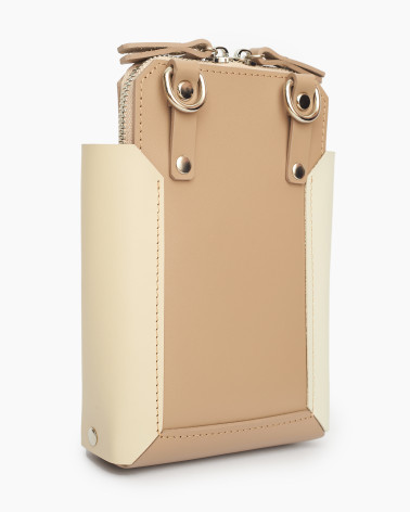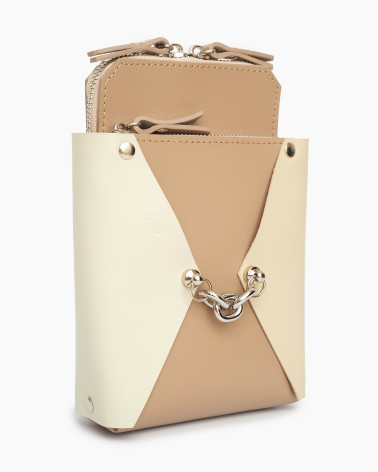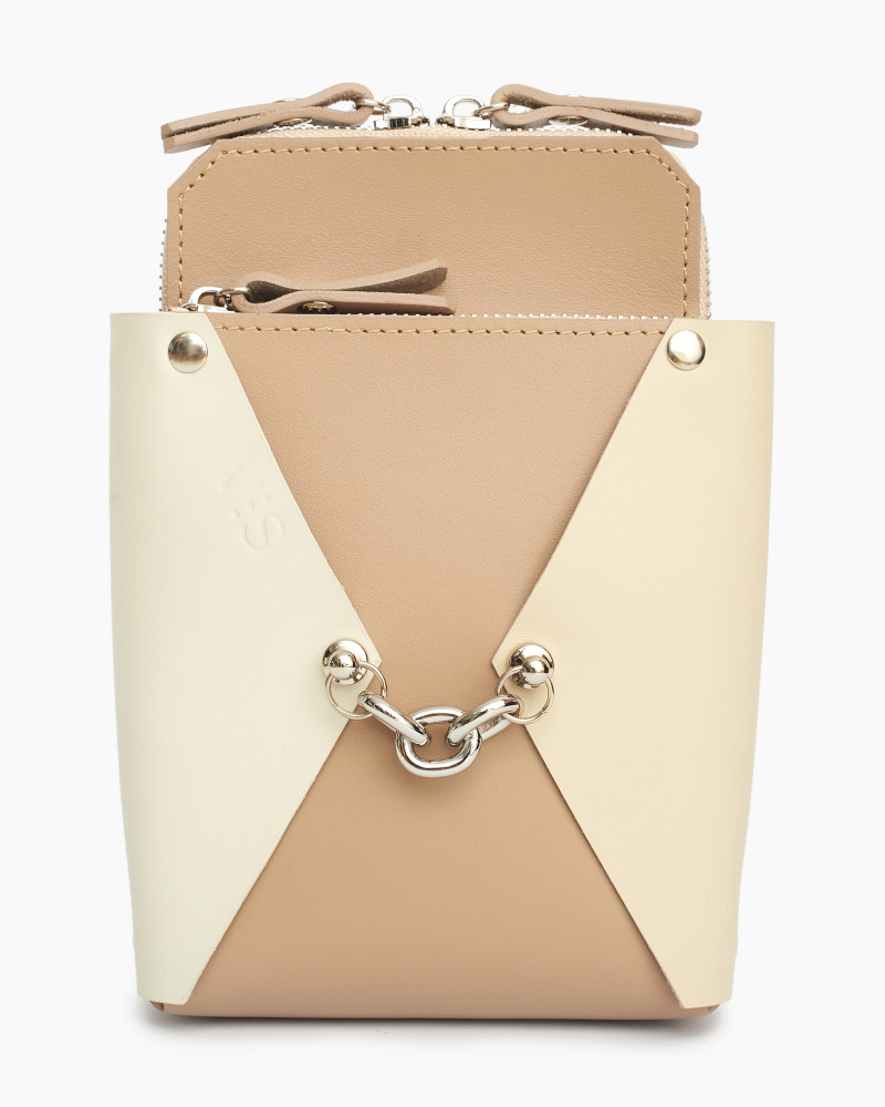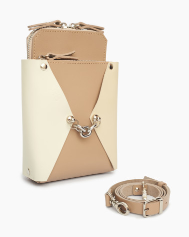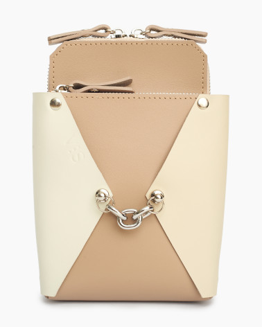 На фото Талія:сумка у поєднанні бежевої шкіри та шкіри у кольорі айворі.