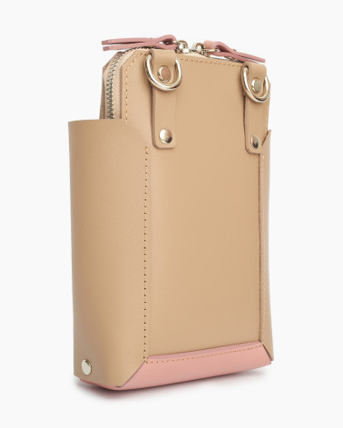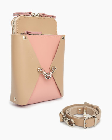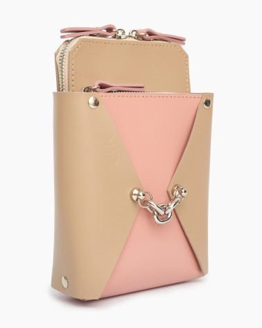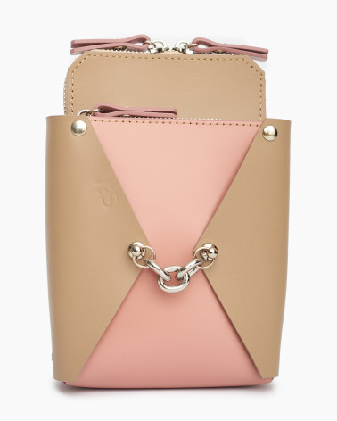 На фото Талія:сумка у поєднанні бежевої та рожевої шкіри.