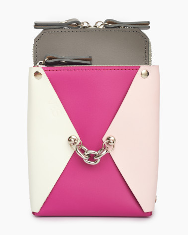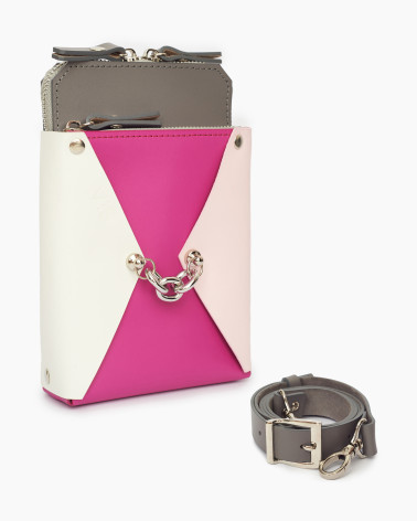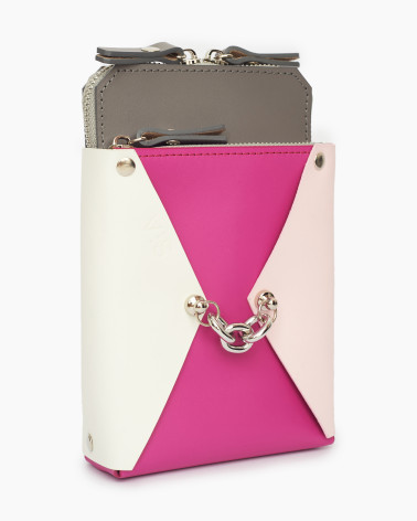 На фото Талія:сумка у поєднанні сірого, білого, чорного та відтінку фуксія.
