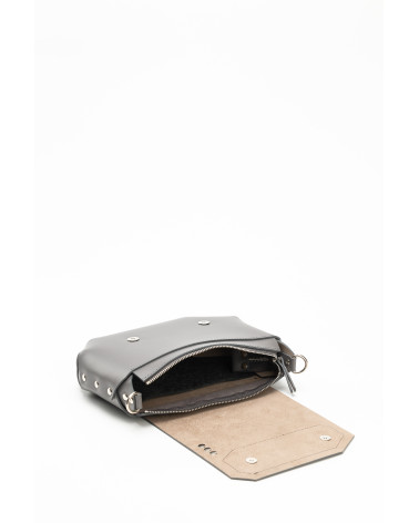 Корпус виготовлено з натуральної шкіри українського виробництва. Основне відділення закривається на кришку-клапан, магніт та блискавку. Всередині сумочки одне відділення та кишенька з фетру для ключів/телефону/дрібничок.