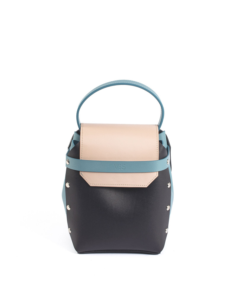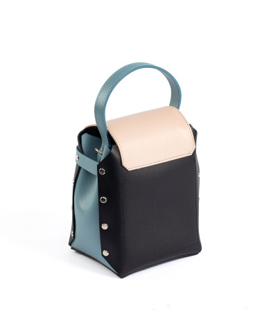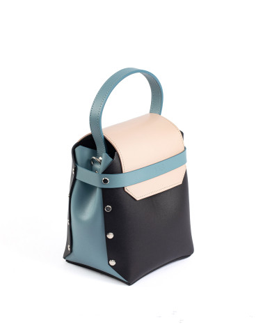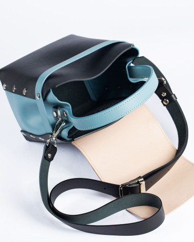 На фото Адара:сумка у поєднанні чорного, блакитного та пудрового.