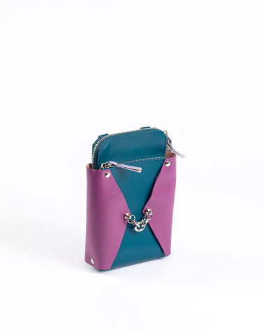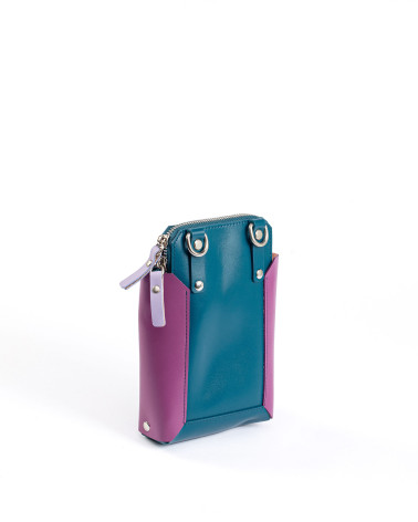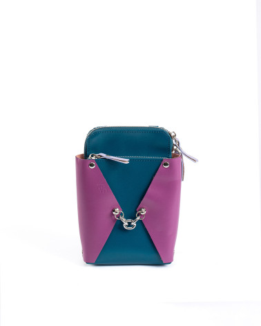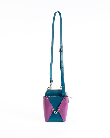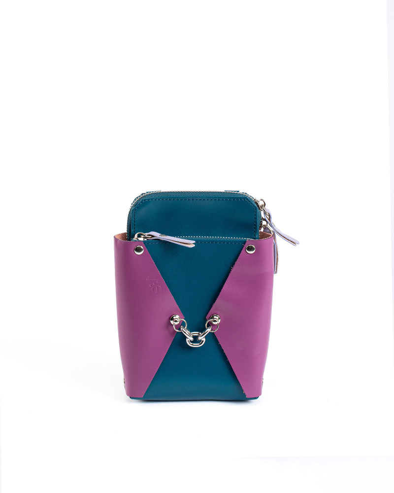На фото Талія:сумка у поєднанні кольору бірюза та пурпурного.