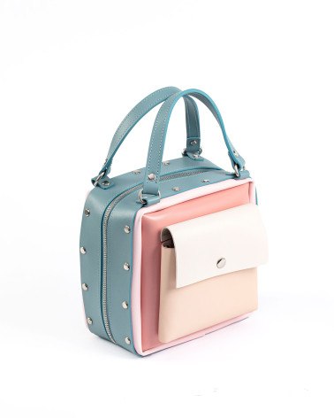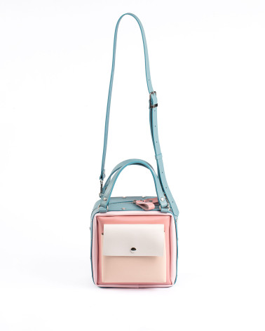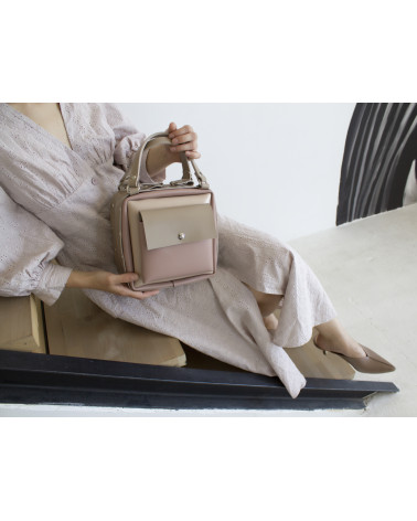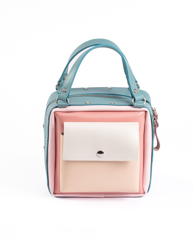 Корпус виготовлено з натуральної шкіри українського виробництва. Основне відділення закривається на блискавку. Всередині сумочки одне відділення та кошеня з фетру для телефону/ключів/різних дрібниць. Блискавка крізь усі грані сумочки дозволяє максимально її відкрити, а спеціальні бокові стопори контролюють, щоб увесь вміст лишався всередині. Широка коротка ручка дозволяє надзвичайно зручно носити сумочку у руці чи на передпліччі. Ззовні сумочку доповнено кишенею, яка закривається на замок та дозволяє легко та швидко знаходити найнеобхідніше. У комплекті є зйомна довга ручка.