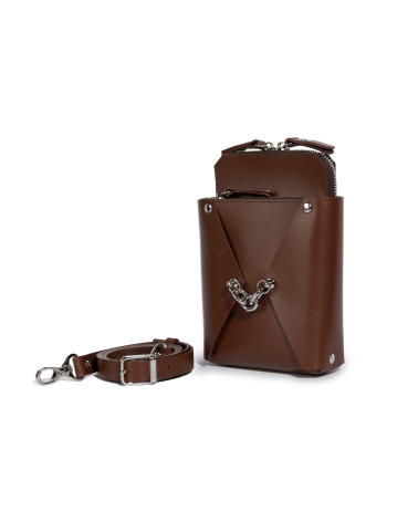 Корпус виготовлено зі шкіри українського виробництва. Основне відділення закривається на блискавку. Всередині сумочки одне відділення. Ззовні модель доповнено зручною кишенею на блискавці. Модель Талія:сумка створена, як варіація сумки для телефону. Тому, залежно від розміру вашого телефону, його можна зручно розміщувати у зовнішній кишені чи в основному відділенні сумки. У комплекті є довга зйомна ручка.