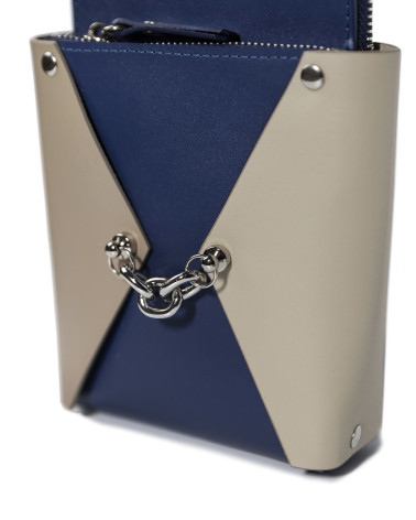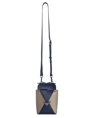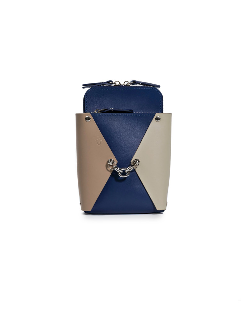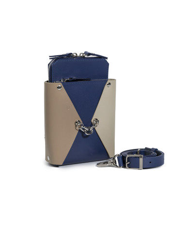 На фото Талія:сумка у поєднанні синього, бежевого та кольору айворі.
