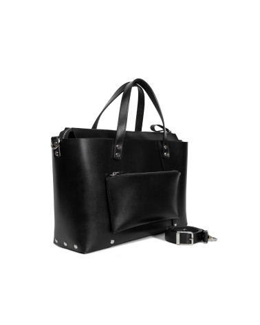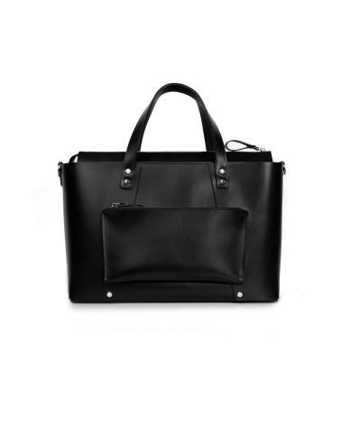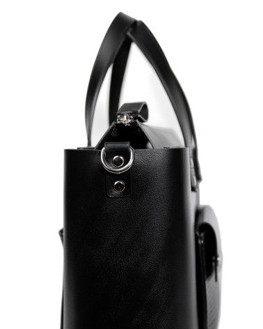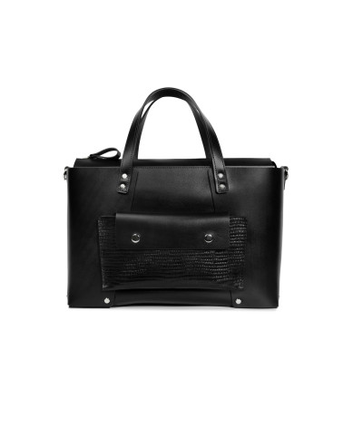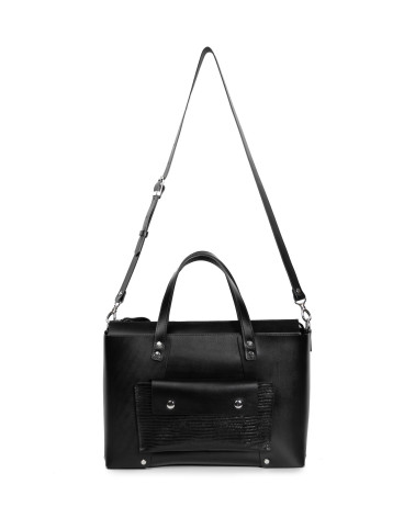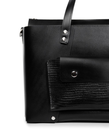 На фото Сільвія:сумка у поєднання чорної гладкої та структуної шкіри.