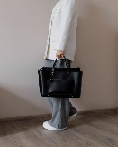 Перед вами сумка, що вміщує абсолютно все. І ноутбук. Абсолютно будь-якого розміру. Ну і головне, вона тримає форму за будь-яких обставин. А ще ми створили її двосторонюю. Бо досконалість вона така.