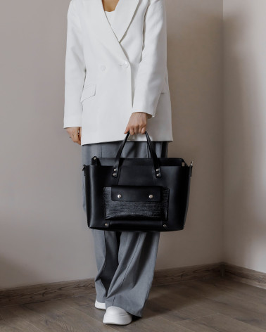 Корпус виготовлено з натуральної шкіри українського виробництва. Основне відділення закривається на блискавку. Всередині сумочки одне відділення та кишенька з фетру для телефону/ключів/ важливих дрібничок. Модель Сільвія має двосторонній дизайн, тому ви можете обирати, що стане ʼлицьовимʼ боком. І тому, з одного боку сумочки є кишенька на блискавці, а з іншого боку - кишенька з магнітами. Розмір та формат цієї моделі створено спеціально під теку з документами, формат А4 та ноутбук 13 дюймів.