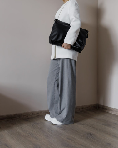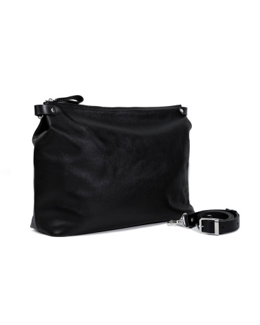 Сумочка виготовлена з мʼякої шкіри італійського виробництва. Всередині одне велике відділення, підклад з щільної бавовни та дві кишеньки. Основне відділення закривається на блискавку, а в комплекті є довга ручка, з регулюванням довжини.