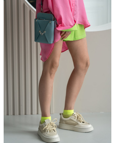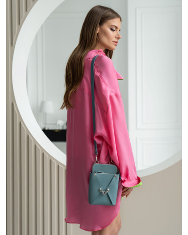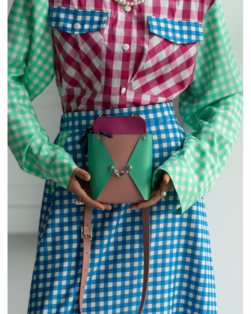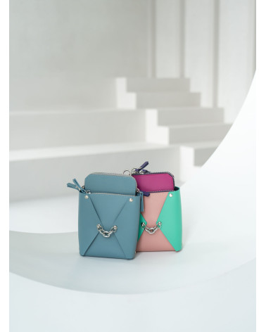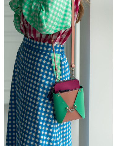 На фото Талія:сумка у поєднанні фуксії, мʼятного, рожевого та фіолетового.