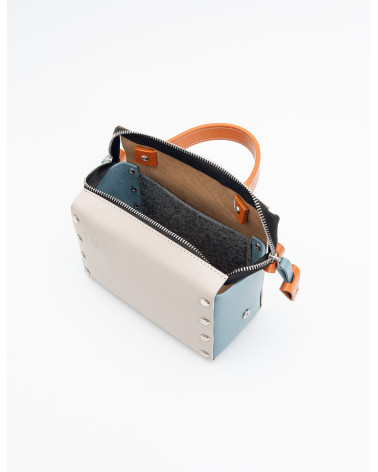 Корпус виготовлено з натуральної шкіри українського виробництва. Основне відділення закривається на блискавку. Всередині сумочки одне відділення, кишенька з фетру для ключів/телефону/дрібничок. Антарес:блискавку доповнено боковими стопорами, що дозволяють додатково захистити вміст від вологи чи випадіння.