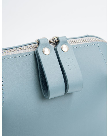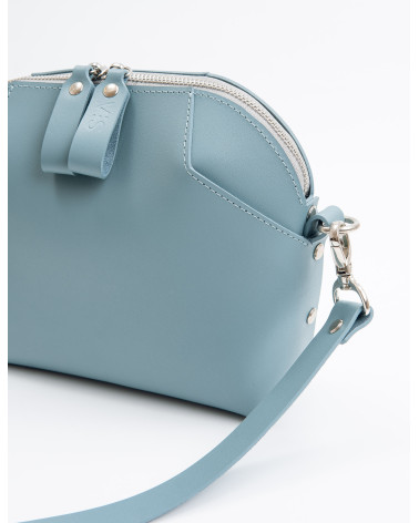 Корпус виготовлено з натуральної шкіри українського виробництва. Всередині сумочки одне відділення та кишенька з фетру. Основне відділення закривається на блискавку. У комплекті є зйомна довга ручка.
