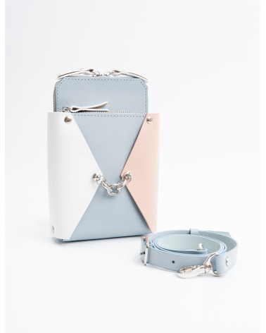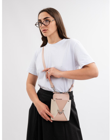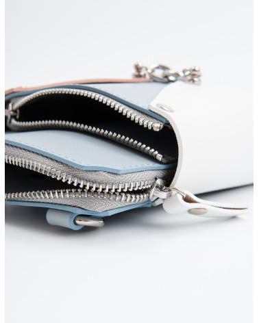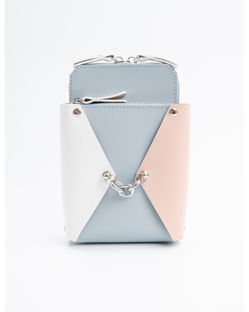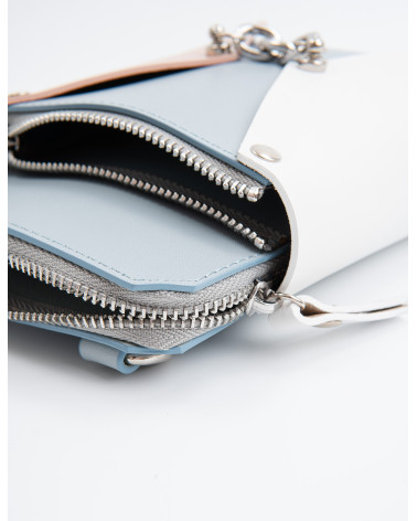 На фото Талія:сумка у поєднанні білого, мʼятного, фіолетового та рожевого.