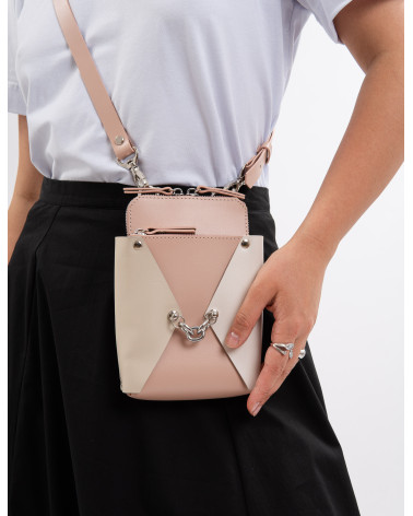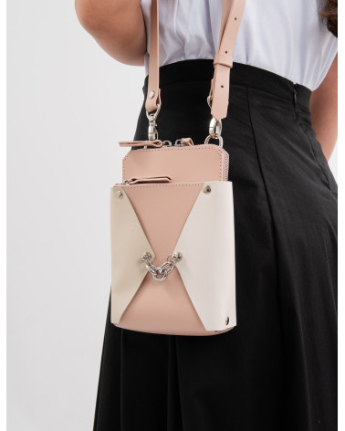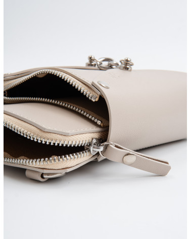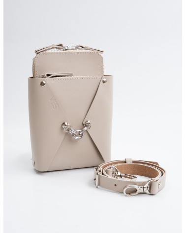 Корпус виготовлено зі шкіри українського виробництва. Основне відділення закривається на блискавку. Всередині сумочки одне відділення. Ззовні модель доповнено зручною кишенею на блискавці. Модель Талія:сумка створена, як варіація сумки для телефону. Тому, залежно від розміру вашого телефону, його можна зручно розміщувати у зовнішній кишені чи в основному відділенні сумки. У комплекті є довга зйомна ручка.