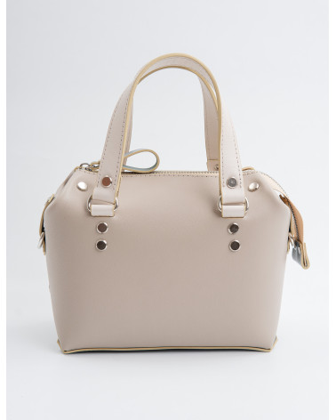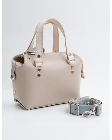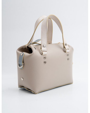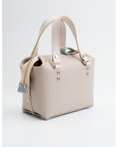 Корпус виготовлено з натуральної шкіри українського виробництва. Всередині одне відділення та кишенька з фетру. За допомогою коротких ручок ви можете носити сумочку у руці, що додасть вашому образу особливого шарму. У комплекті є зйомна довга ручка. За бажанням вона може бути виготовлена повністю зі шкіри чи у поєднанні з ланцюжком.