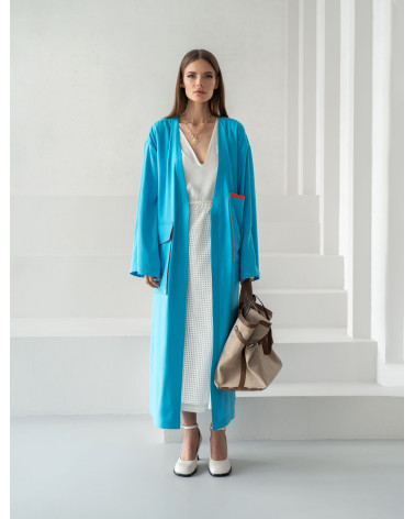 Корпус виготовлено з натуральної замші та доповнено шкірою українського виробництва. Основне відділення закривається на магніт. Всередині шопперу є зйомний гаманець-клатч, виготовлений також зі шкіри. Його можна використовувати як другу сумку, клатч, а також він допомагає швидко "переїжджати" із сумки в сумку.