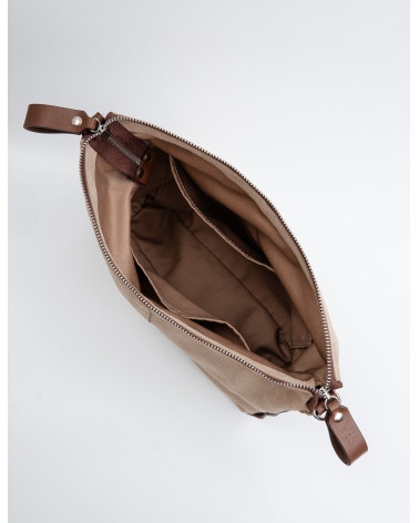 Основне відділення сумочки закривається на блискавку. Всередині сумочки підклад зі щільної бавовни, дві кишені та надзвичайно містке основне відділення. У комплекті дві ручки - широка, щоб носити у руці чи на перепліччі. Та довга з регулюванням довжини.