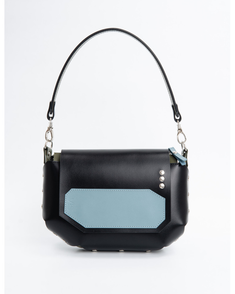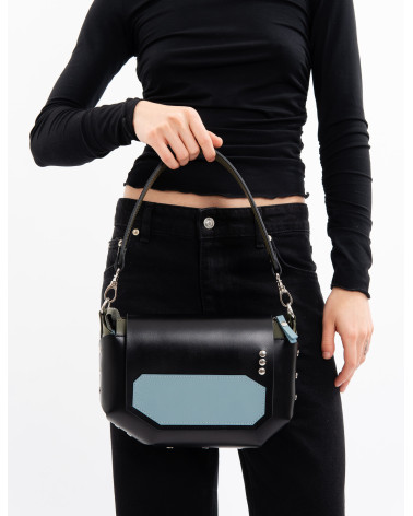 Корпус виготовлено з натуральної шкіри українського виробництва. Основне відділення закривається на кришку-клапан, магніт та блискавку. Всередині сумочки одне відділення та кишенька з фетру для ключів/телефону/дрібничок.