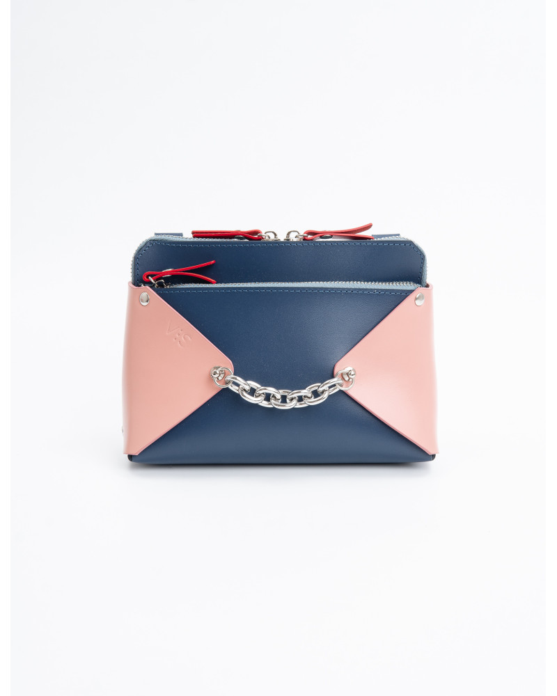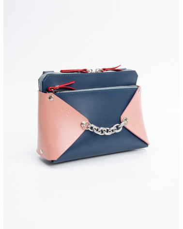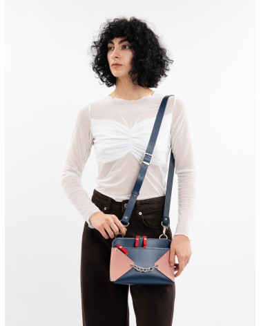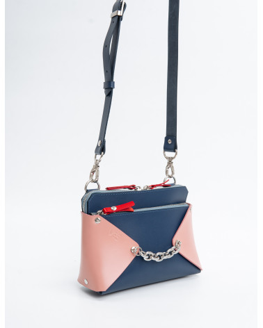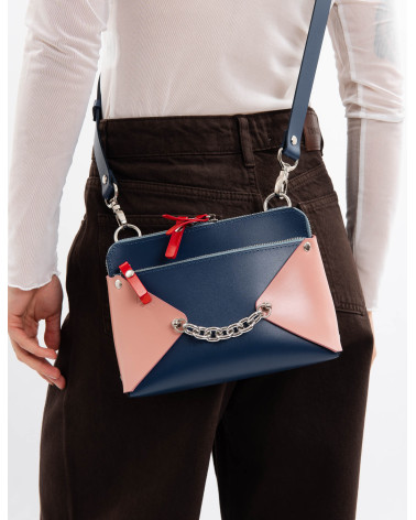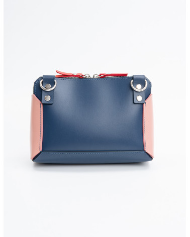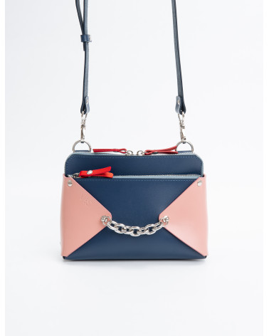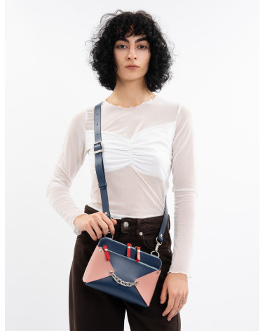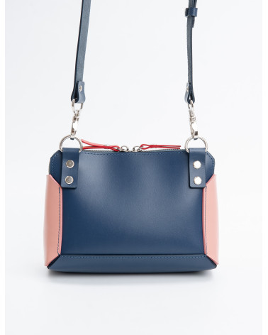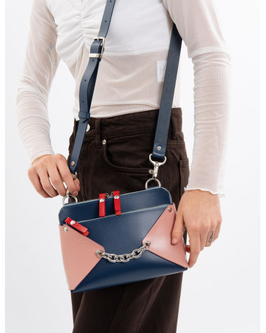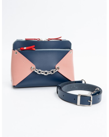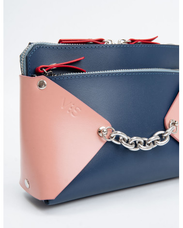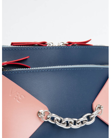 На фото Талія:сумка у поєднанні синього, рожевого та червоного.