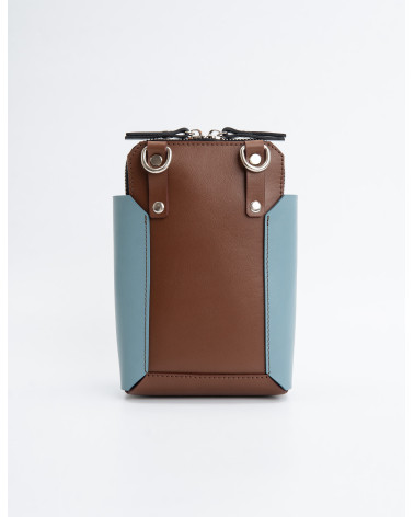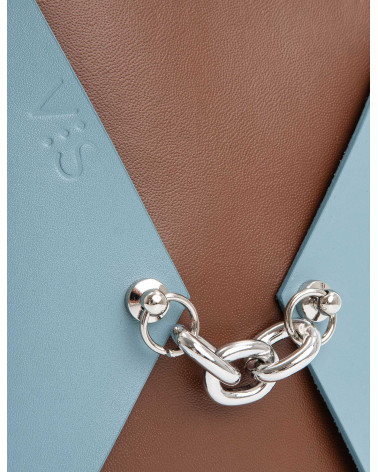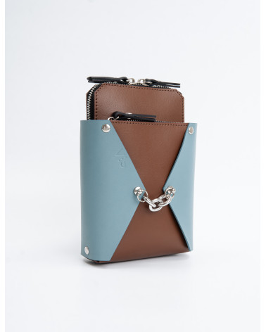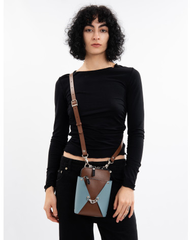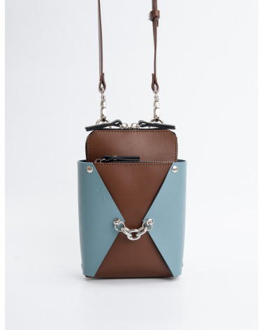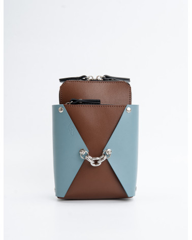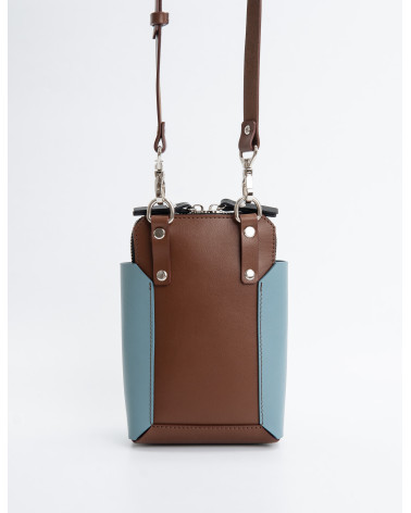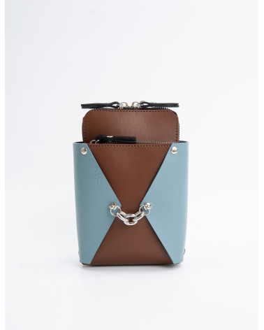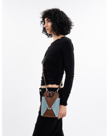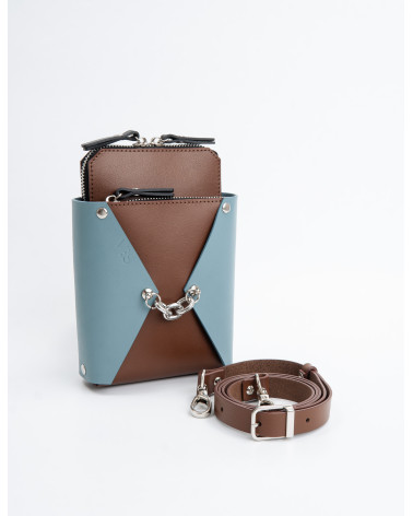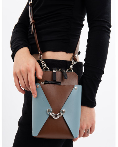 На фото Талія:сумка у поєднанні коричневого та блакитного.