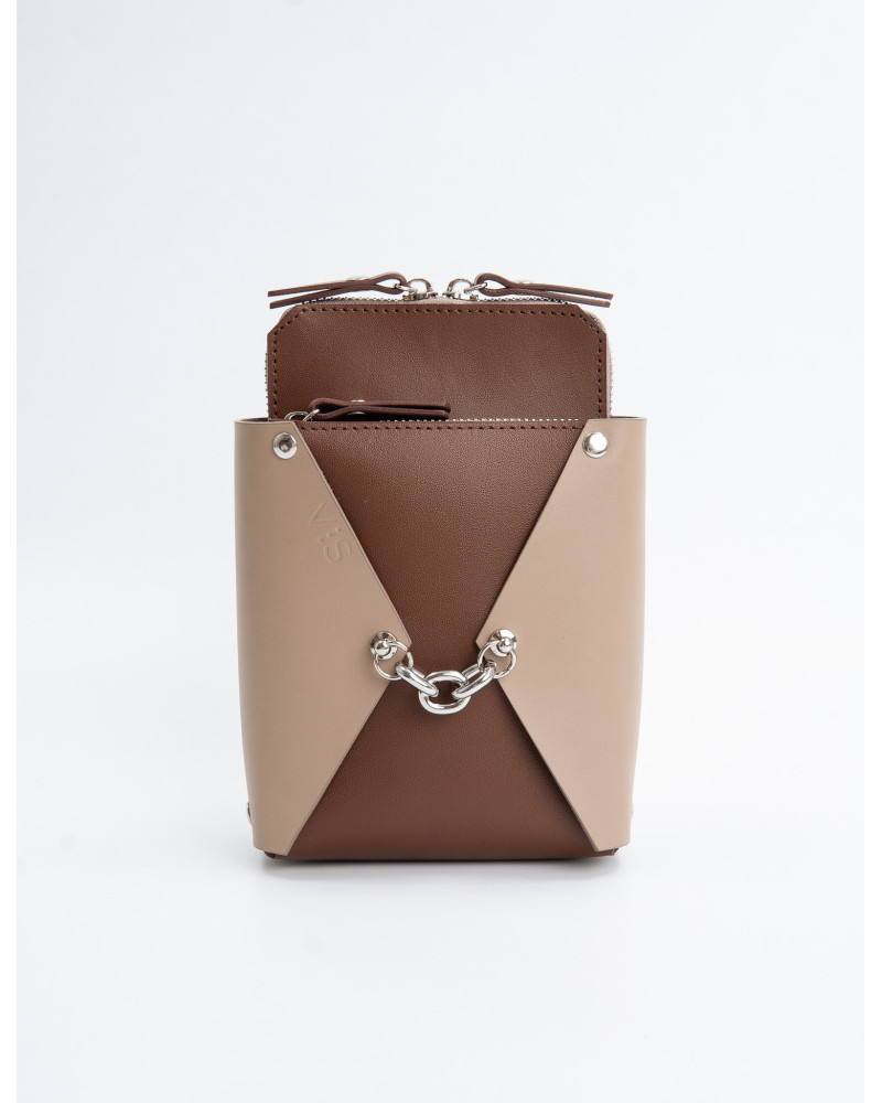 На фото Талія:сумка у поєднанні коричневого та бежевого.