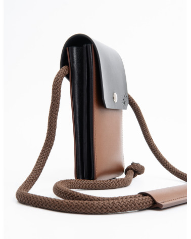 Ми створили цю сумку для порятунку світу. По-перше, це сумка для телефону, що має два відділення. По-друге, вона швидко трансформується у сумочку на талії та надзвичайно витончено її підкреслює. По-третє, більше не доведеться довго та нервово шукати телефон. Він буде поруч та йому там буде затишно. По-четверте, це зручна "друга" сумочка, що буде пасувати до вашої основної сумочки чи наплічника. По-п'яте, цей ремінь-шнур. Він створений для маленьких милих дрібниць, на кшталт кейса для навушників чи гаманця.