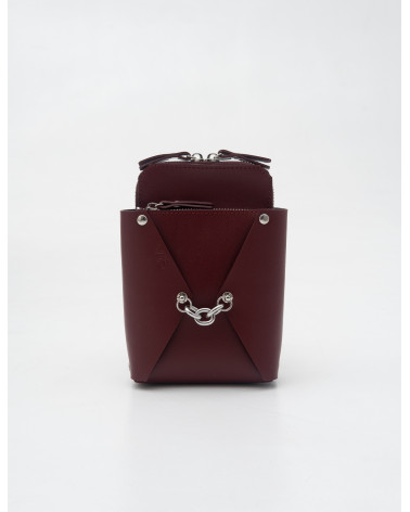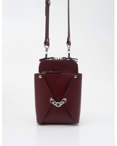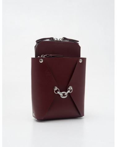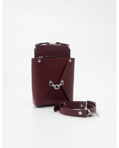 Корпус виготовлено зі шкіри українського виробництва. Основне відділення закривається на блискавку. Всередині сумочки одне відділення. Ззовні модель доповнено зручною кишенею на блискавці. Модель Талія:сумка створена, як варіація сумки для телефону. Тому, залежно від розміру вашого телефону, його можна зручно розміщувати у зовнішній кишені чи в основному відділенні сумки. У комплекті є довга зйомна ручка.