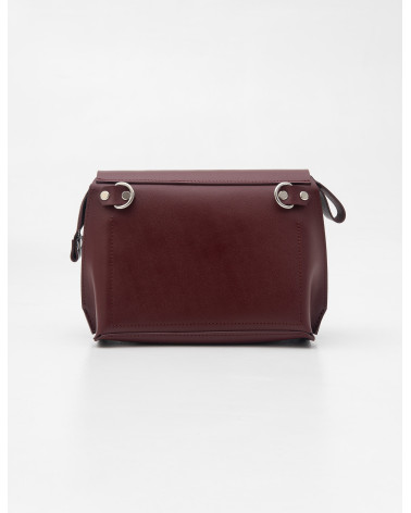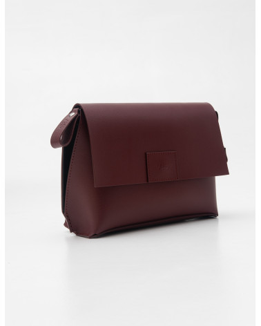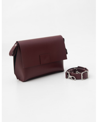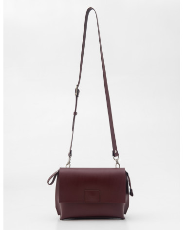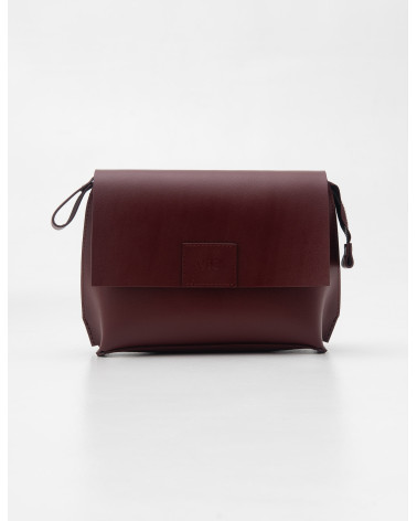 Корпус виготовлено зі шкіри українського виробництва. Основне відділення закривається на блискавку, кришку-клапан та магніт. Всередині сумочки одне відділення та кишеня з фетру для телефону, ключів, різних дрібничок. Бокові елементи сумочки виконані з менш щільної шкіри. Це дозволяє портфелю тримати форму з меншим та більшим наповненням. У комплекті є зйомна довга ручка.