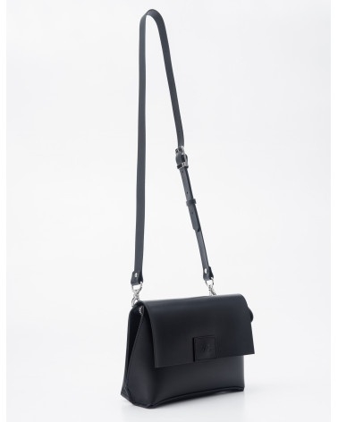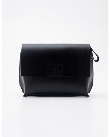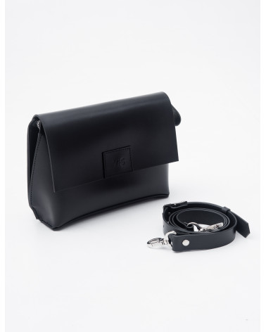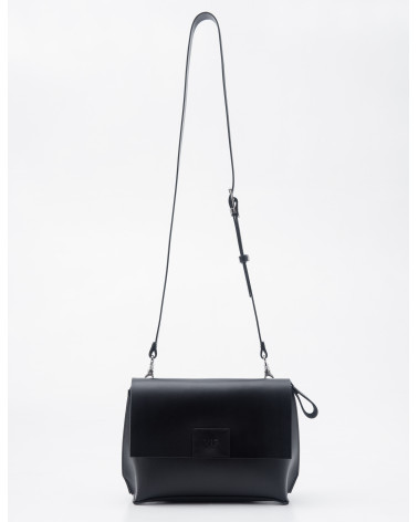Корпус виготовлено зі шкіри українського виробництва. Основне відділення закривається на блискавку, кришку-клапан та магніт. Всередині сумочки одне відділення та кишеня з фетру для телефону, ключів, різних дрібничок. Бокові елементи сумочки виконані з менш щільної шкіри. Це дозволяє портфелю тримати форму з меншим та більшим наповненням. У комплекті є зйомна довга ручка.