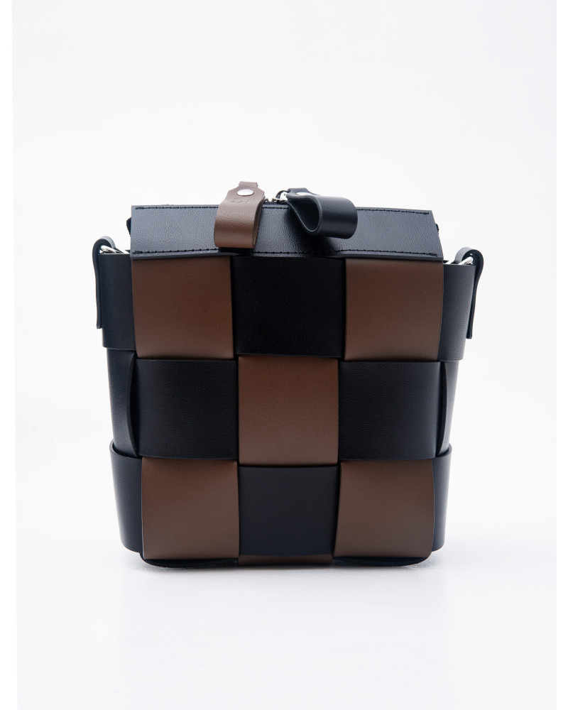 На фото Елара:сумка у поєднанні чорного та коричневого.